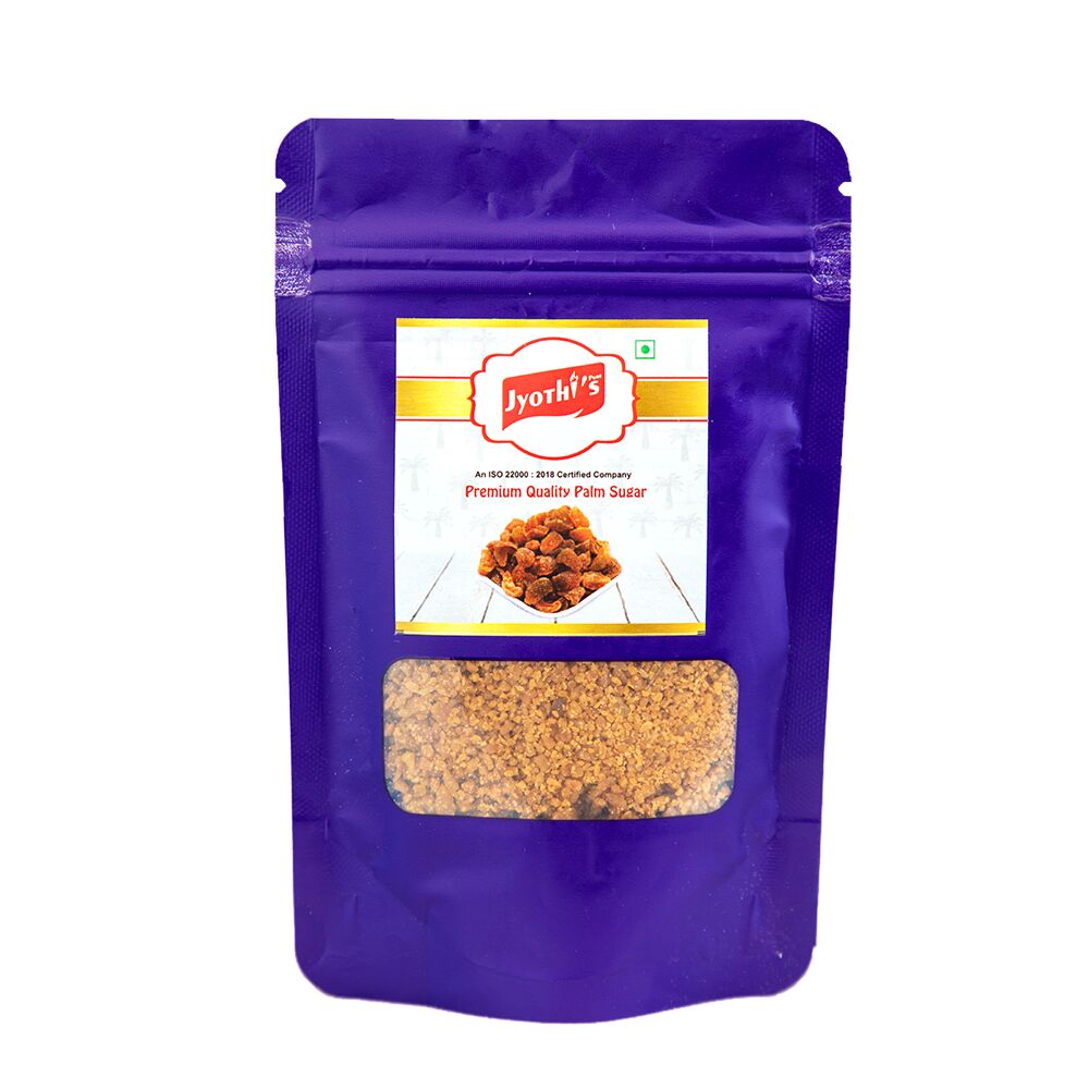 It involves hectic, risky & tough process. It takes 60-70 days to extract the sugar naturally from Palmyra. It is completely natural. Zero preservatives, Zero additives, no sugar added, zero colouring.